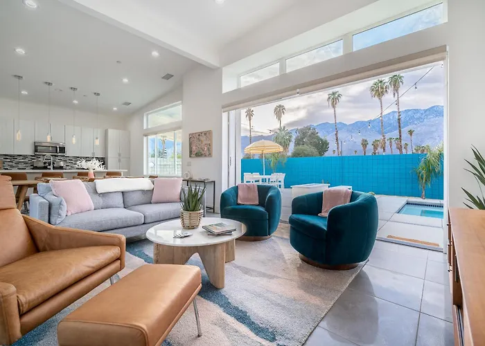 Situada a una distancia de 3 km del Museo de arte de Palm Springs, la Stunning Mountain Views! New Mid-Century Home! Palm Springs cuenta con una piscina privada, una bañera de hidromasaje, que garantizan una estancia relajante. La casa de vacaciones ofrece acceso a una terraza-solárium y se encuentra a 10 minutos en coche del Jardín Botánico Moorten y Cactarium.